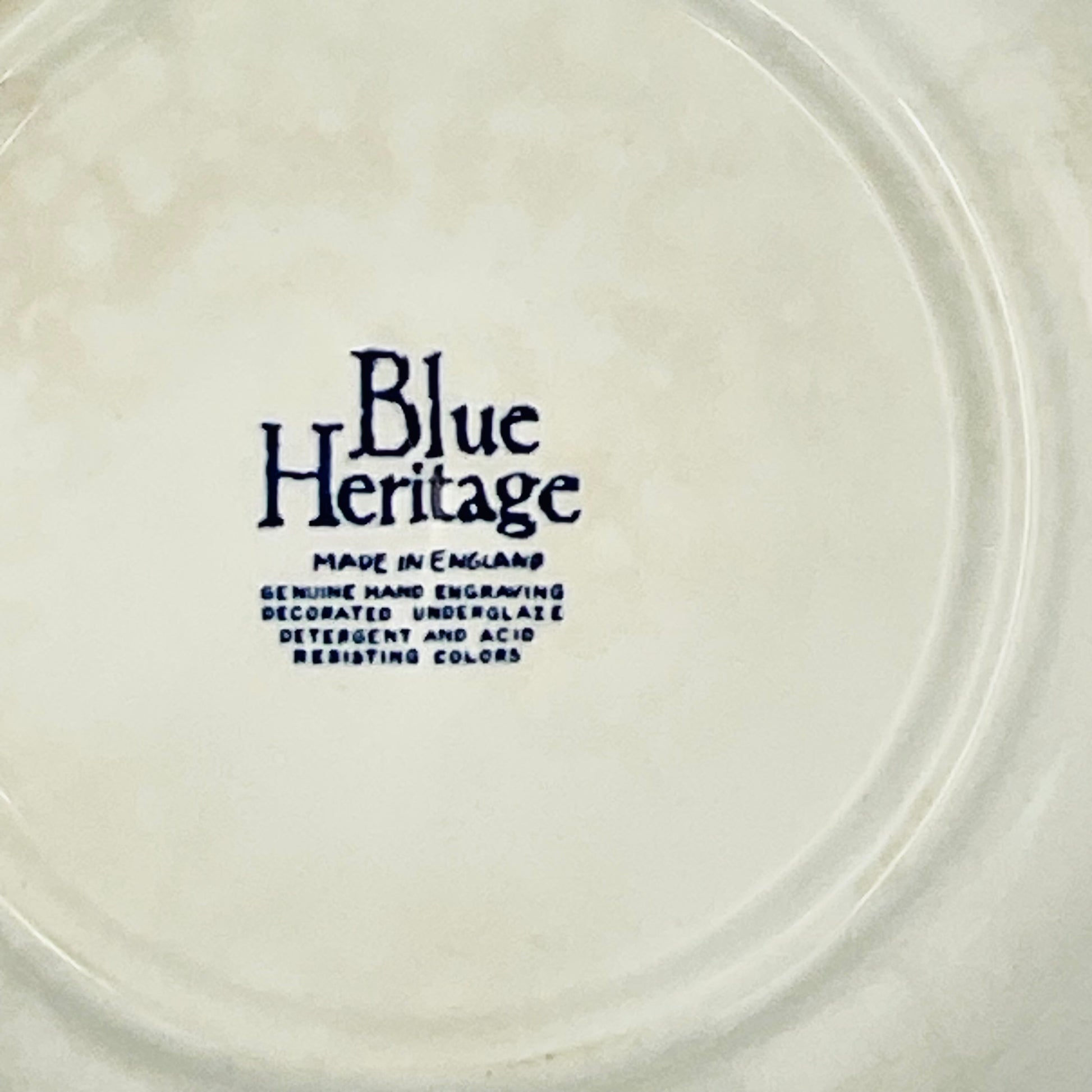 Enoch Wedgwood's "Blue Heritage" bowl exemplifies timeless English pottery craftsmanship. This elegant piece features the signature cobalt blue transfer-printed design that defines the collection, showcasing intricate botanical and geometric motifs characteristic of classic Wedgwood aesthetics. Perfect for display or functional use, the bowl brings refined vintage charm to any interior. A distinguished addition to collections celebrating British ceramic heritage and enduring design excellence.