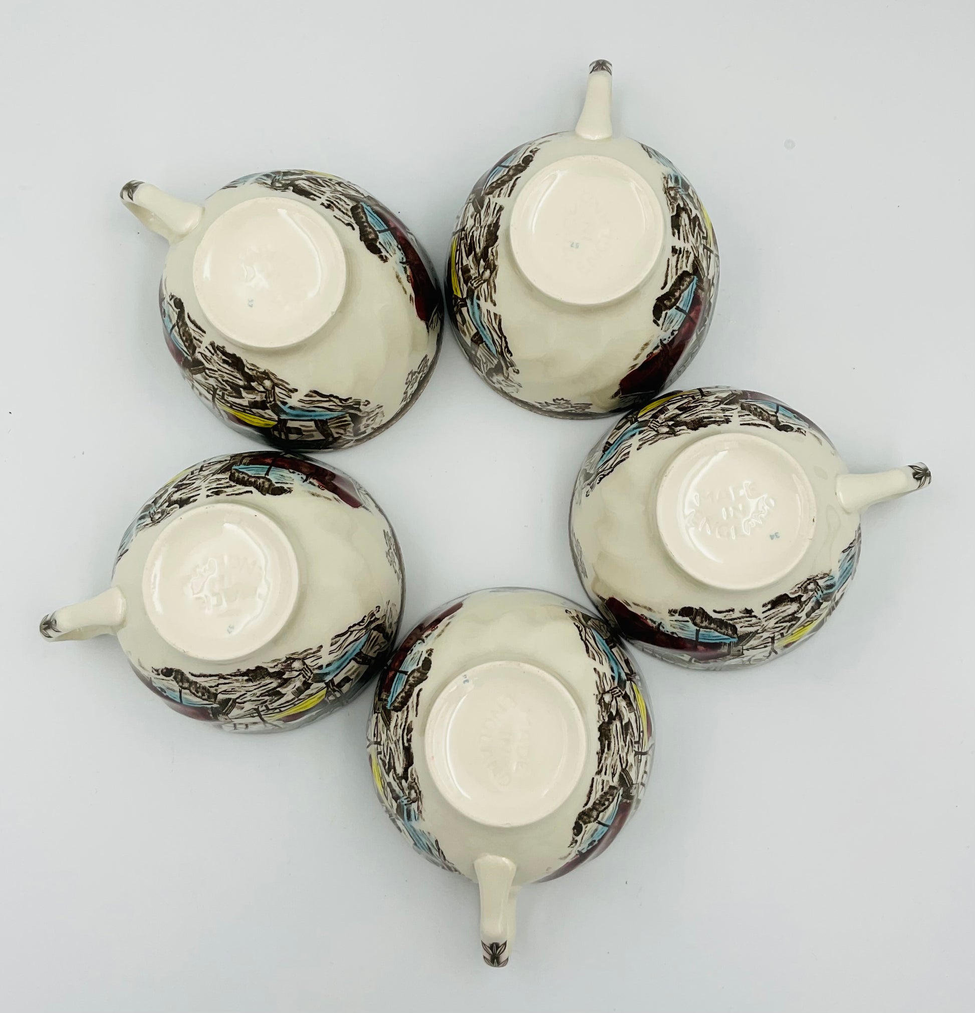 Johnson Brothers Covered Bridge Tea Cups bring timeless charm to your tea time. These vintage-inspired cups feature the iconic Covered Bridge pattern, showcasing delicate blue and white detailing that captures classic English pottery craftsmanship. Perfect for everyday sipping or special occasions, each cup pairs beautifully with matching saucers. The durable ceramic construction ensures these treasured pieces will be enjoyed for years to come. A lovely addition to any vintage collection or a thoughtful gift for tea enthusiasts.