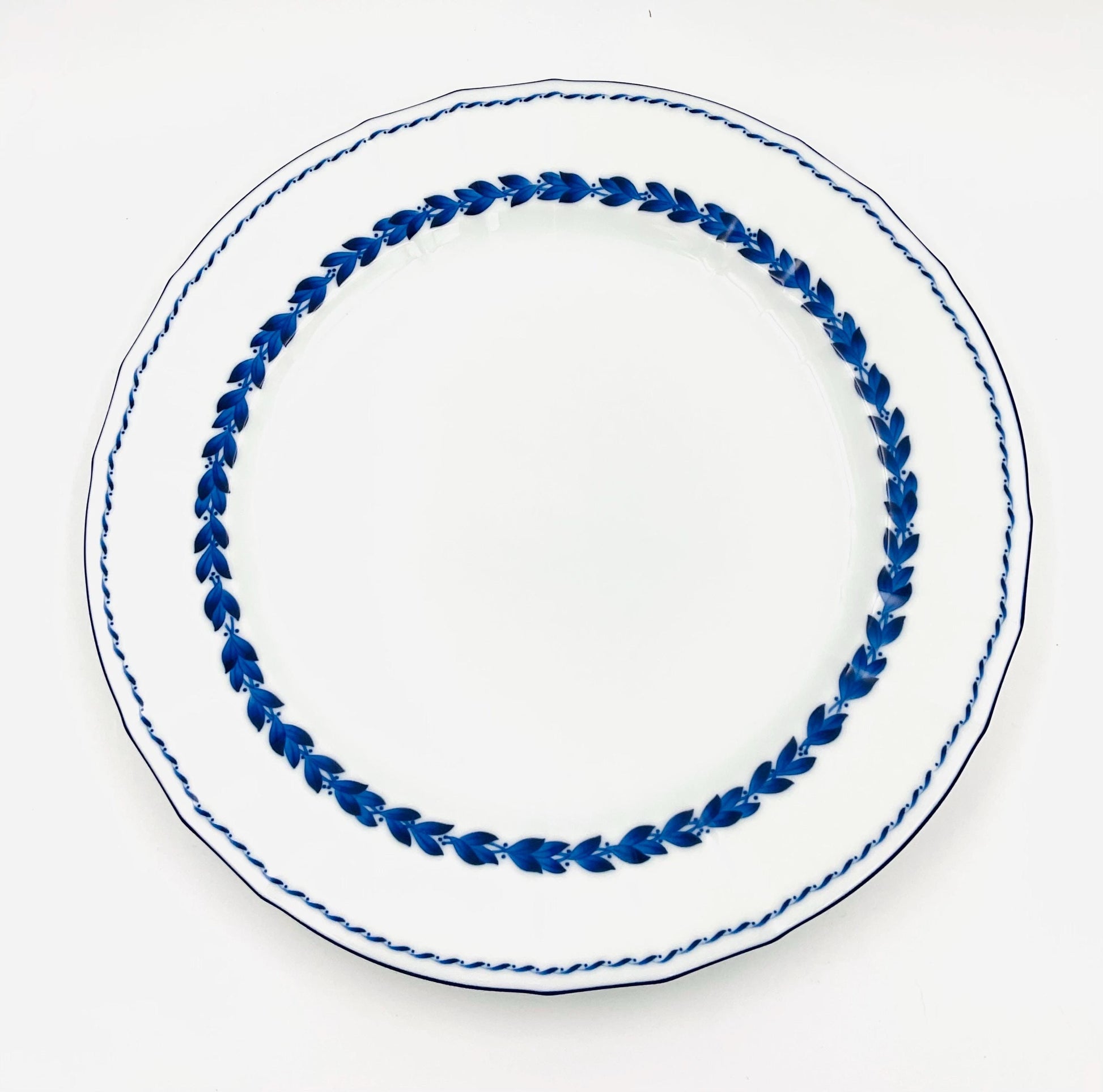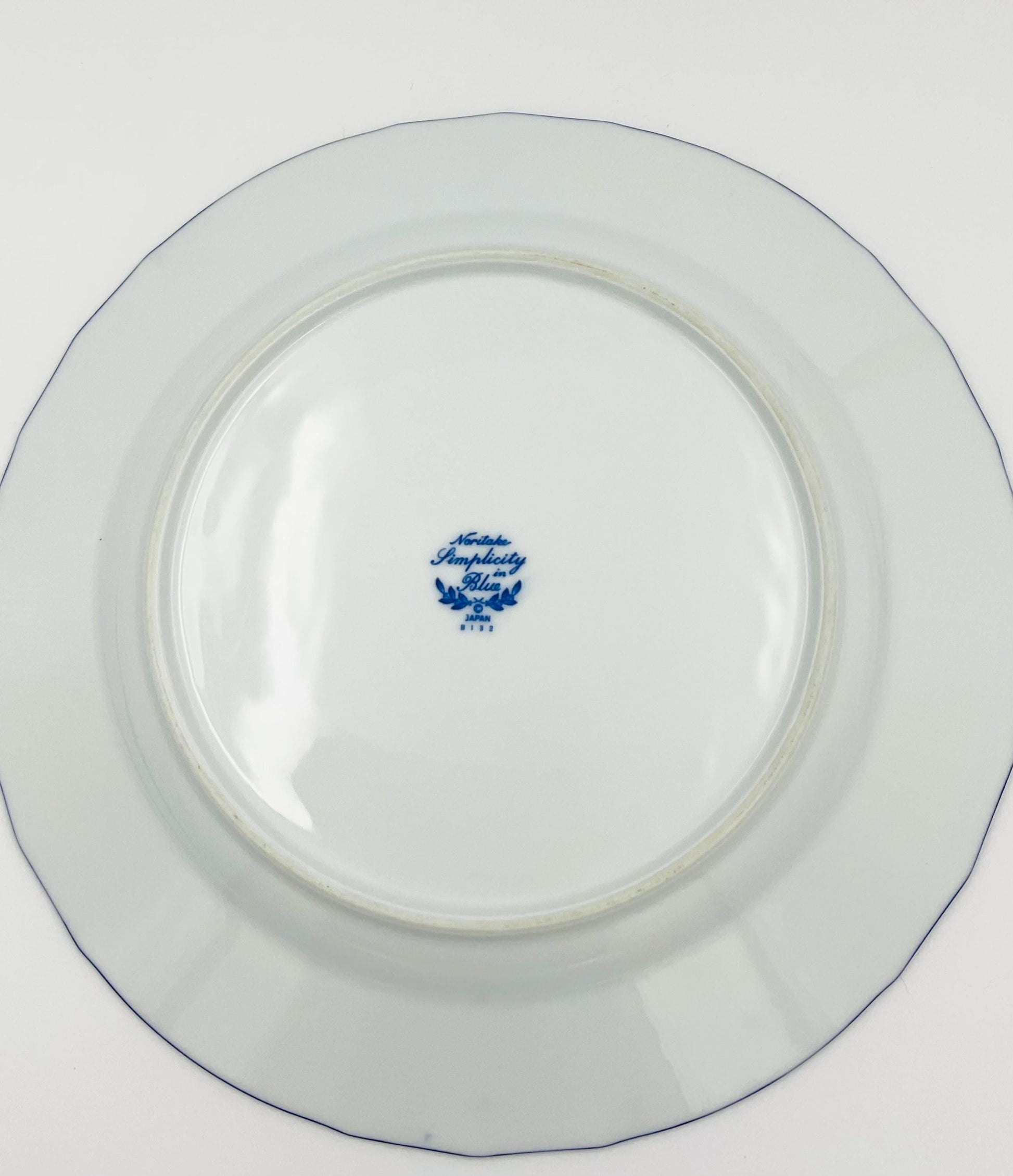 Vintage Noritake Simplicity in Blue pattern plate. This patter has been discontinued and was in production between 1980 and 1986 and features a blue laurel band and scrolls.