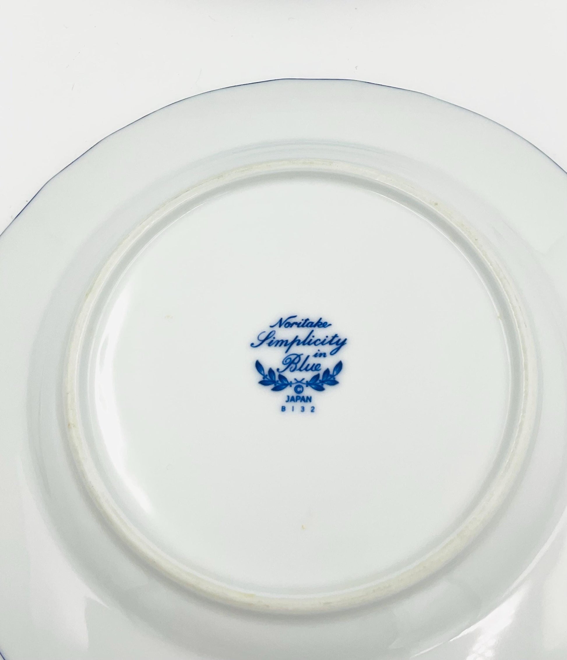 Vintage Noritake Simplicity in Blue pattern plate. This patter has been discontinued and was in production between 1980 and 1986 and features a blue laurel band and scrolls.