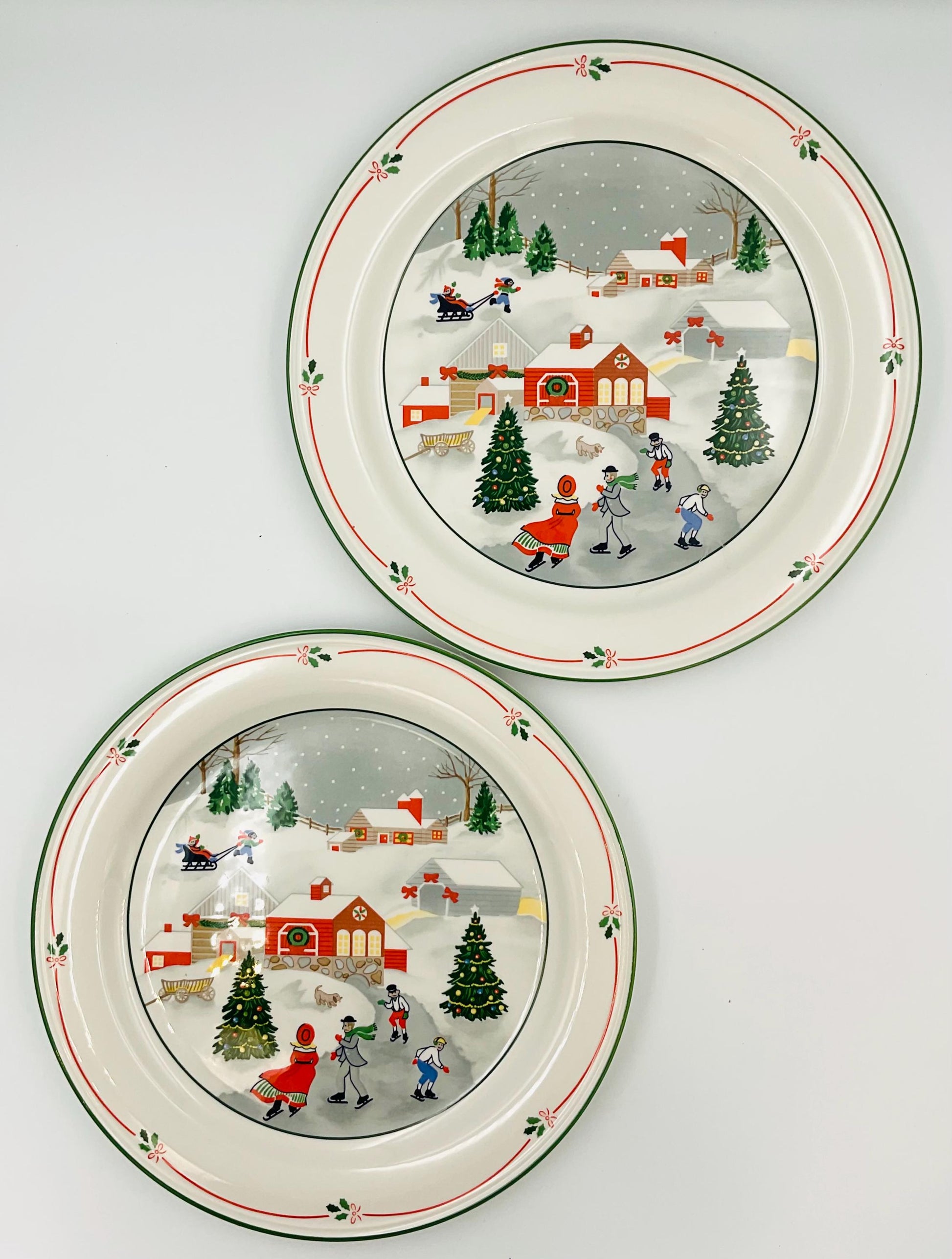 The Sango Silent Night Dinner Plate is a vintage stoneware plate featuring a festive Christmas-themed pattern called Silent Night. This round dinner plate, manufactured in 1986 by Sango, is part of their Silent Night product line and is decorated in a multicolor design. Hand wash only to maintain its quality, this art pottery piece adds a touch of Christmas charm to any dining table.