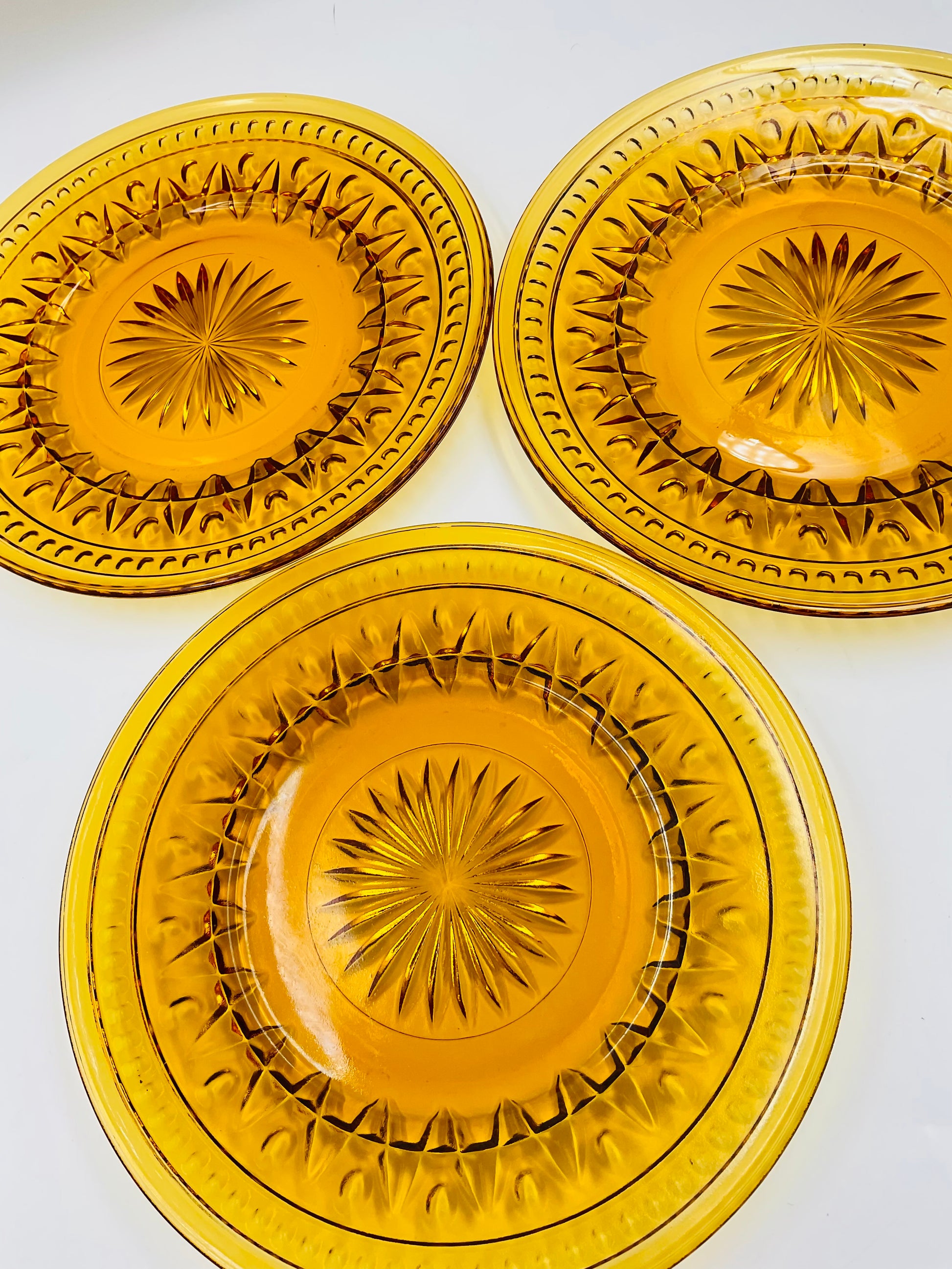 Vintage Indiana Glass Colony Park Lane Amber Salad Plate - Set of 3