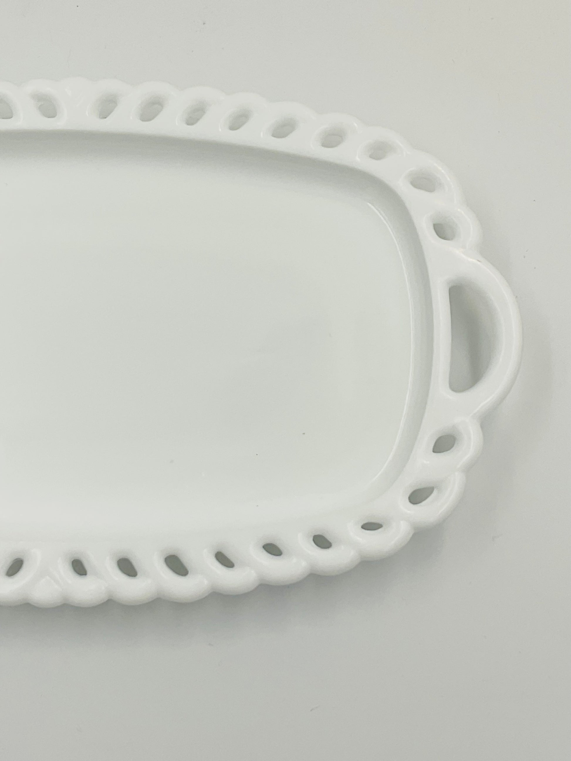 Vintage Indiana Glass Milk Glass Lace Edge Small Tray