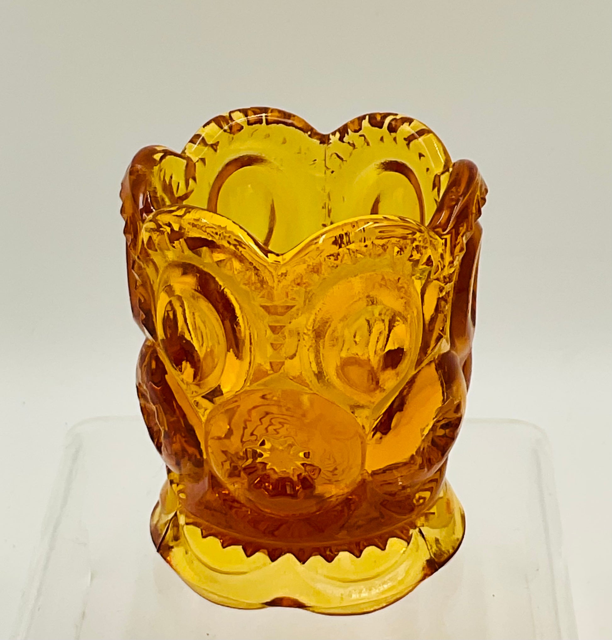 Vintage L.E. Smith Moon & Star Amber Toothpick Holder