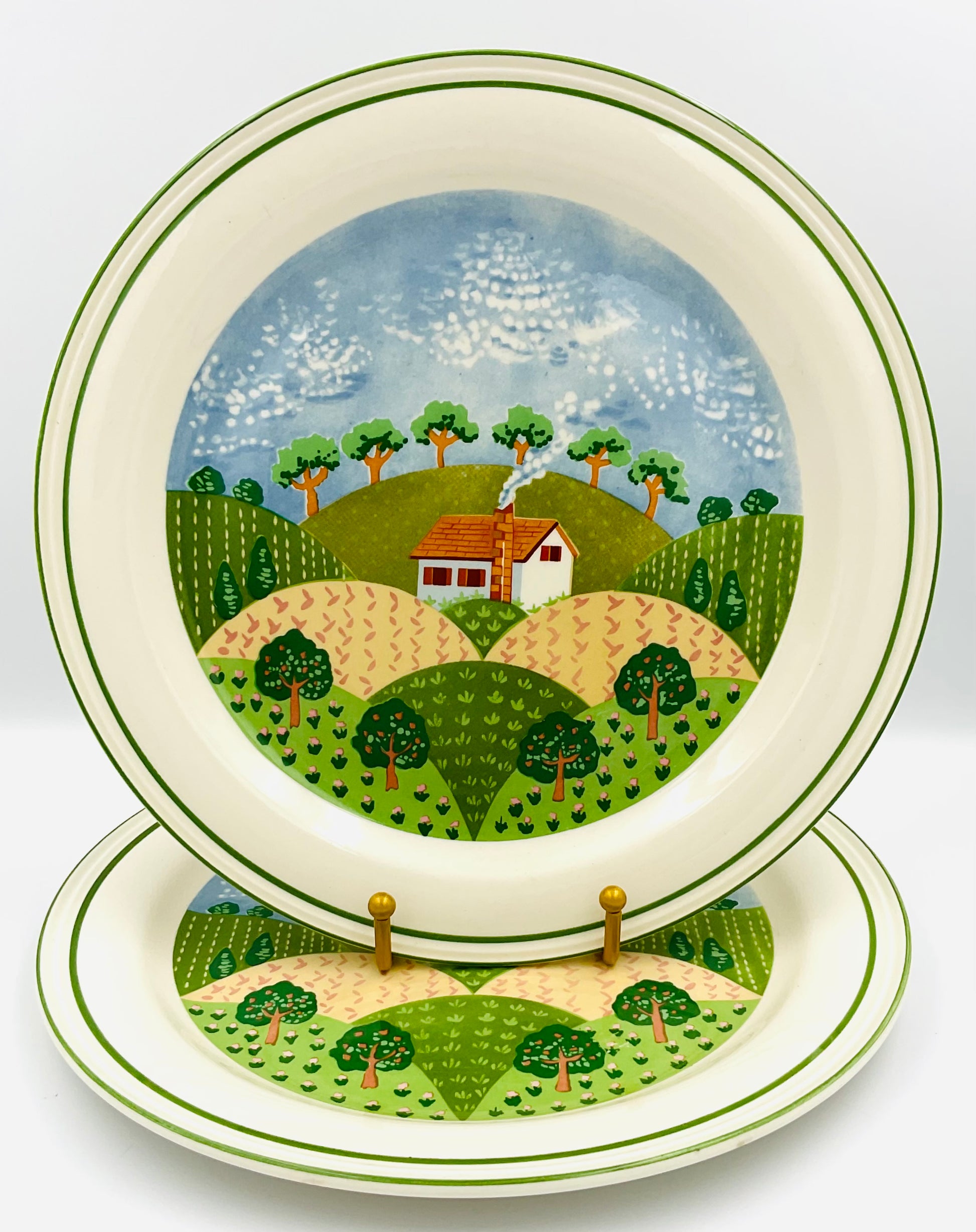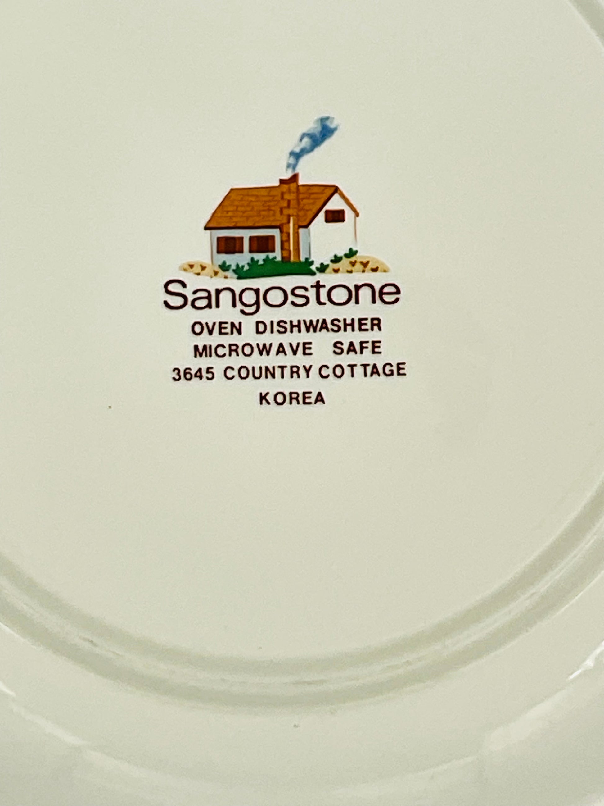Vintage Sango Sangostone "Country Cottage" dinner plates - set of 2 pattern number 3645. Bring a touch of rustic charm to your table with these delightful Sango Sangostone "Country Cottage" dinner plates. Each piece in this set of two features a warm, inviting design that captures the cozy essence of countryside living. Perfect for everyday dining or special gatherings, these durable plates blend vintage appeal with practical functionality. The charming cottage-inspired pattern adds character to any table setting, making them an ideal addition to your vintage home collection or a thoughtful gift for someone who loves classic, timeless style.