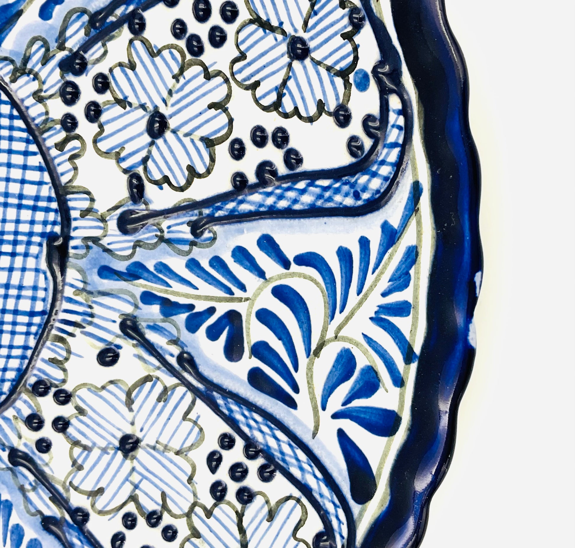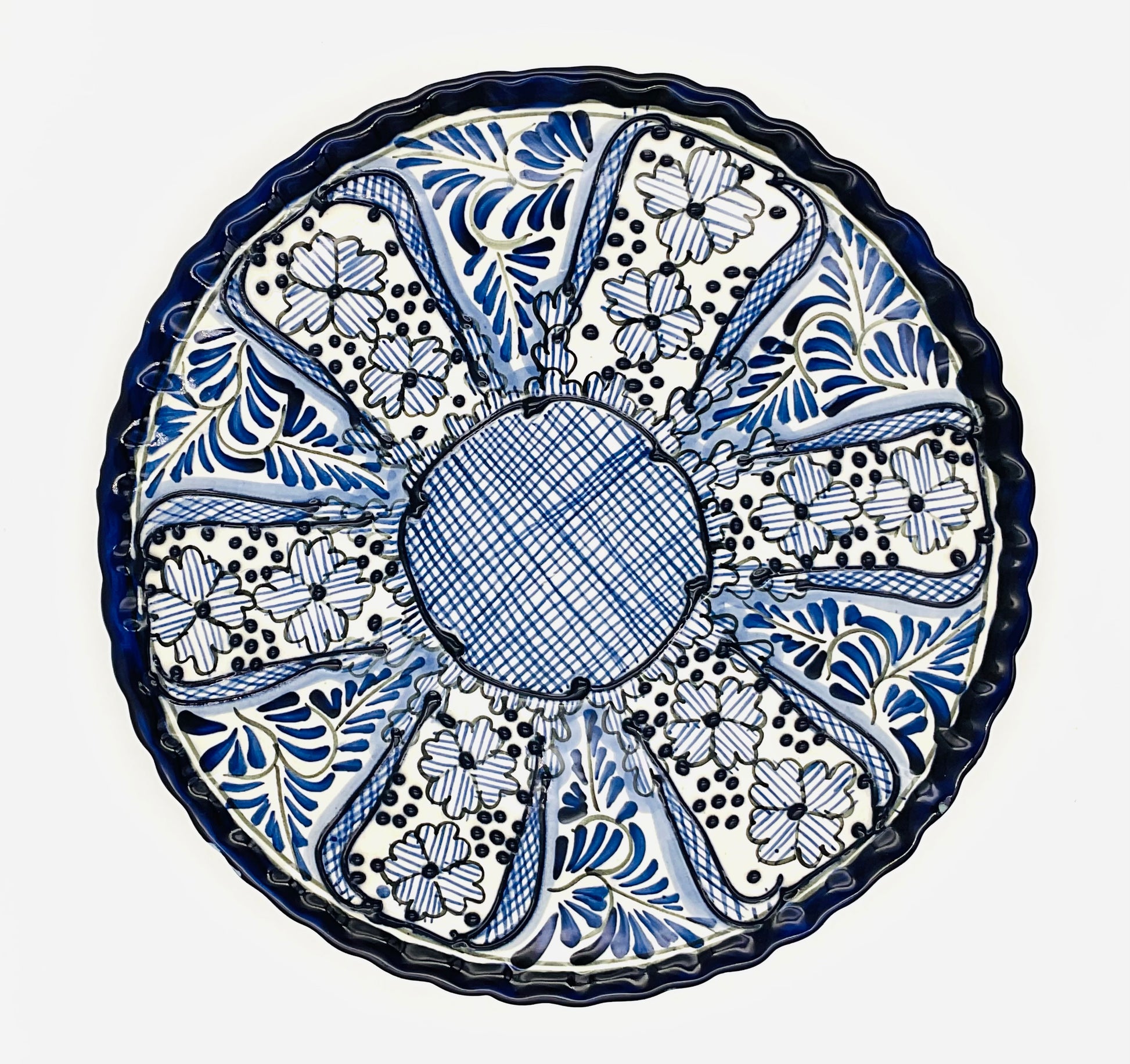 Talavera Blue & White Mexican Hand Painted Pottery Plate