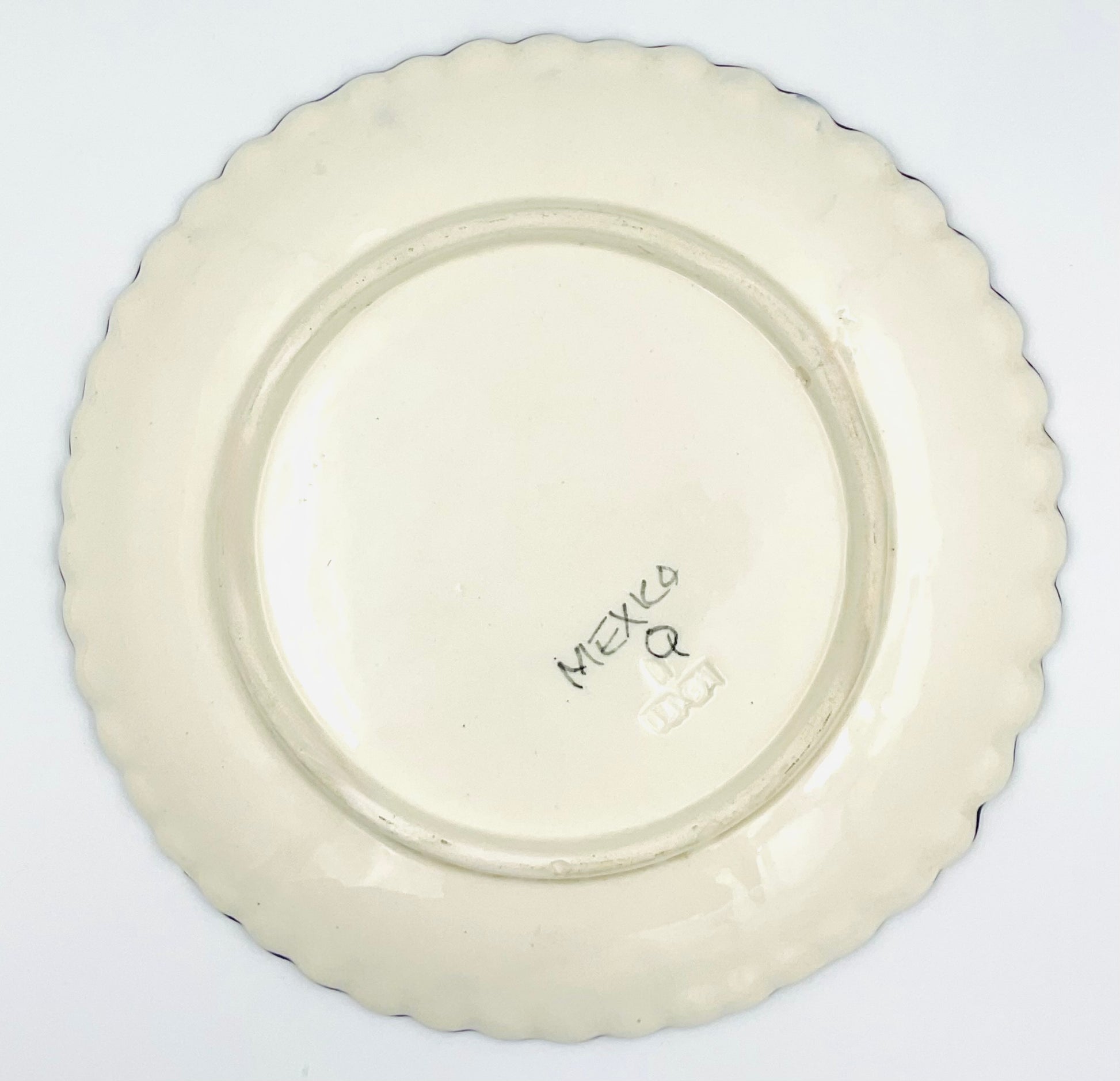 Handcrafted in the centuries-old Talavera tradition, this striking pottery plate showcases vibrant cobalt blue and crisp white glazes applied with meticulous artistry. Likely produced in the 1950’s, each piece bears the authentic character of traditional Mexican ceramics—no two are identical. Perfect for collectors seeking genuine folk art or for those who appreciate functional beauty that elevates everyday dining and display. A timeless accent that brings warmth and cultural heritage to any interior.