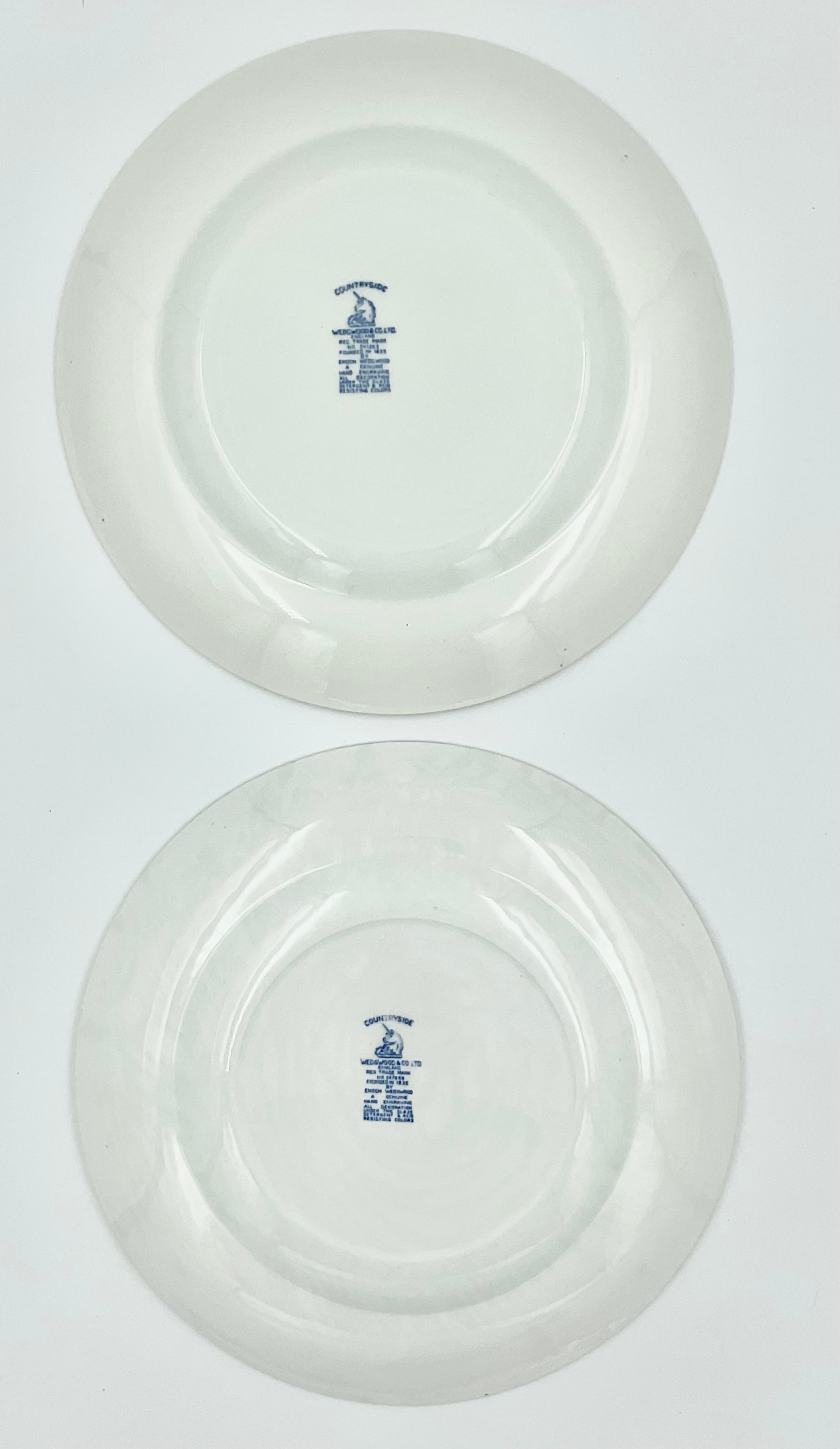 This plate features all decoration under the glaze for lasting, color-fast beauty. The backstamp confirms its authenticity as genuine Wedgwood production with hand-engraved detailing.